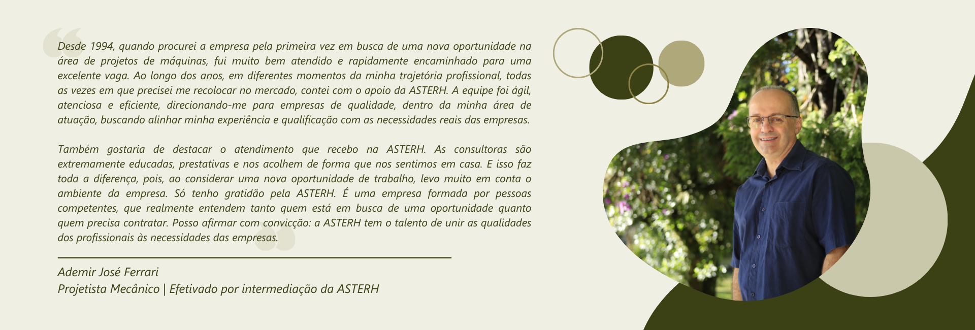 Há 40 anos a ASTERH Consultoria em Recursos Humanos oferece soluções inovadoras em Recrutamento e Seleção de Estagiários e Efetivos nos níveis tático e estratégico. Promove soluções customizadas para organizações, seus grupos e para profissionais e suas carreiras.